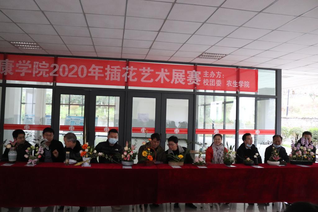 12月13日下午,由校团委、太阳成集团tyc33455cc官网主办, 太阳成集团tyc33455cc官网园林系、花卉园艺社承办的太阳成集团tyc33455cc官网2020年“插花艺术展赛”在江北校区一号教学楼西大厅顺利举行。本次大赛特邀安康高新绿化工程有限公司副总经理丁新端、教育公司史丰教授, 太阳成集团tyc33455cc官网袁海龙、沈大刚、张海军、段展展等老师担任评委。公司党总支书记张纪生致开幕辞,副经理朱文东、旬阳紫薇园林花卉有限公司经理王国浪观摩了整场比赛。