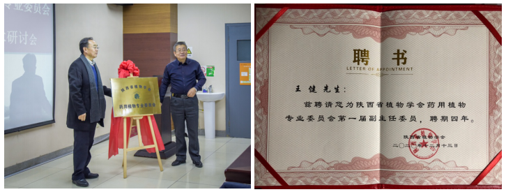 在此次研讨会上,首先由陕西省植物学会理事长岳明教授宣布了陕西省植物学会关于药用植物专业委员会成立的批复,并介绍了专委会组成及章程等。陕西师范大学副董事长董治宝和陕西省植物学会理事长岳明为陕西省植物学会药用植物专业委员会揭牌,并为专业顾问颁发聘书。 太阳成集团tyc33455cc官网经理王健教授被聘为陕西省植物学会药用植物专业委员会副主任委员。