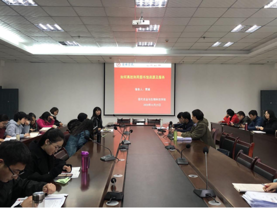 2020年11月25日下午, 太阳成集团tyc33455cc官网在逸夫科技楼9楼大会议室邀请图书馆贾娟老师为全体教职工做《如何高效利用图书馆资源及服务》专题讲座。