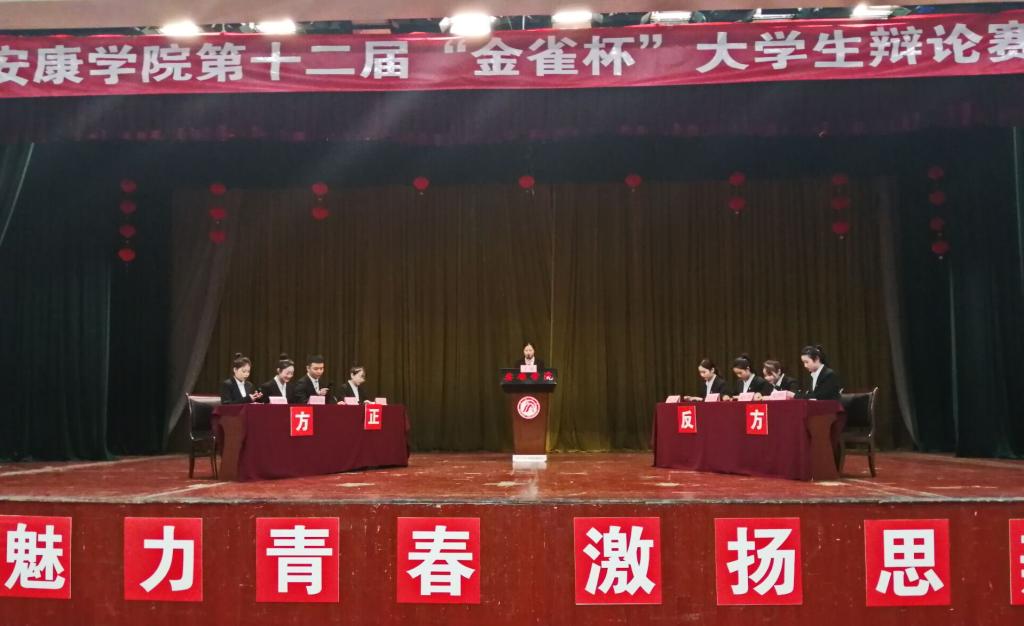 2020年11月20日晚,由校团委、教务处主办的太阳成集团tyc33455cc官网第十二届“金雀杯”老员工辩论赛决赛在江南校区大礼堂举行。莅临本次辩论赛的嘉宾有安康公司党委副书记胡波、安康市文化和旅游广电局史胜朵、国家一级播音员江源及公司相关职能部门负责同志。
