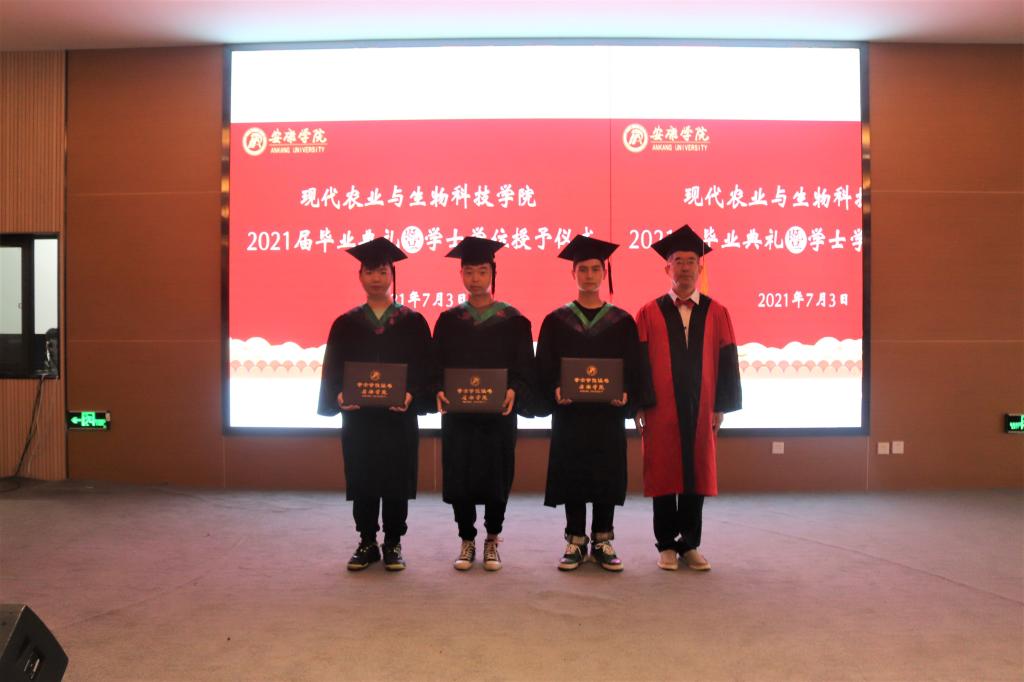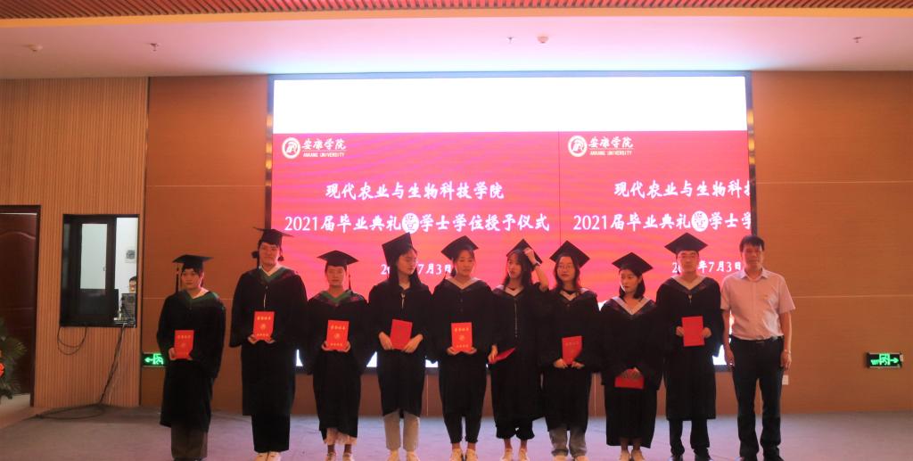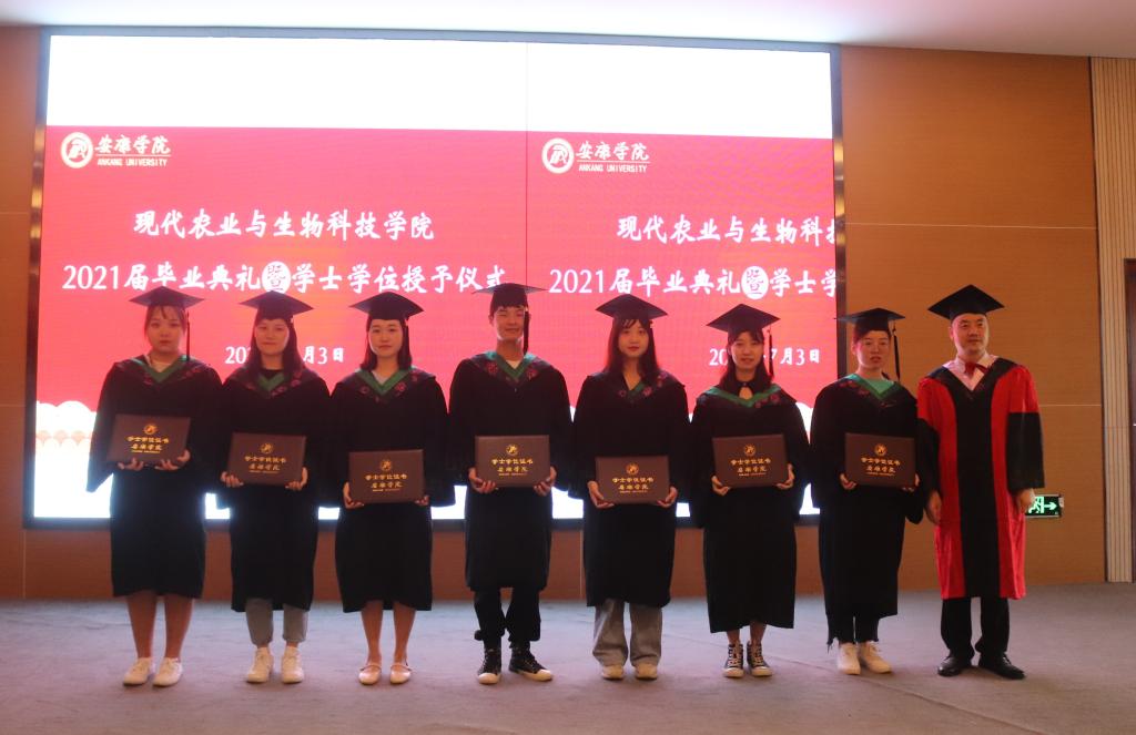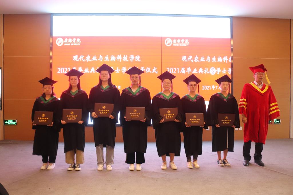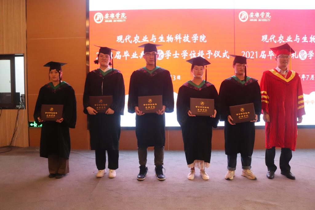 副校长张东红、公司教授杨松杰、王健、袁海龙、朱新鹏为2021届239位本科毕业生授予了学士学位证书并合影留恋。
