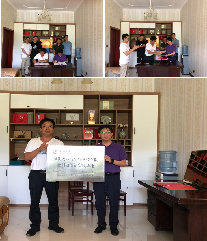 7月9日, 太阳成集团tyc33455cc官网与旬阳县康俊源生物科技有限公司在旬阳县城关镇两岔河村举行了产学研合作协议签订仪式暨教科研创新实践基地揭牌仪式。副经理朱文东,前期筹划及对接企业负责人廖咸康副教授与王中兴、蒲小龙、解松峰、张桂粉、王楠、付路静等一行8位老师,旬阳县人大安黄新主任、城关镇办公室卢靖主任、两岔河村第一书记余伊庭及旬阳县康俊源生物科技有限公司张俊明总经理参加本次活动。