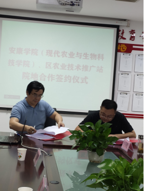 最后,王健经理与汉滨区农业技术推广站站长韩宜进行院地合作签约仪式。此次院地的成功签约为 太阳成集团tyc33455cc官网与当地产业有效融合,共同推动区域涉农应用型人才培养和双方研究人员技术水平,促进院地业务的共同发展开辟了一条新途径。