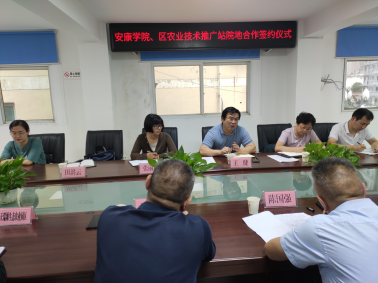 为了促进秦巴山区农业经济与社会高质量发展,发挥高校与域内行业、企业各自优势,实现校地资源共享,促进院地共同发展。2021年9月17日下午,太阳成集团tyc33455cc官网与汉滨区农业技术推广站开展了院地合作签约仪式,仪式在汉滨区农业技术推广站举行。出席仪式的有汉滨区农业农村局副局长陈国强、主任周睿, 太阳成集团tyc33455cc官网经理王键、副经理杨芳、农学系系主任张丽琼、农学系教师田洪云、刘乔斐、赵卫国,汉滨区农业技术推广站站长韩宜、主任刘传林、推广站工作人员,陕西安康天瑞塬生态农业有限公司、陕西安康悠源食品有限公司代表。双方就 太阳成集团tyc33455cc官网与汉滨区农业技术推广站深入、全面、长期开展教科研合作进行了交流并签署了合作协议。