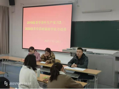 2021年10月25日上午,茶学专业2019级和2020级召开了实习动员会,茶学专业2019级和2020级全体员工和茶学系系主任李冬花、实习带队教师齐玉岗、马瑛老师参加会议。