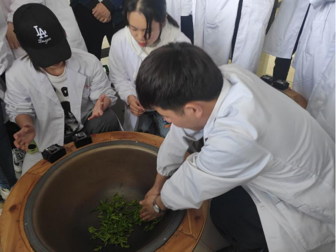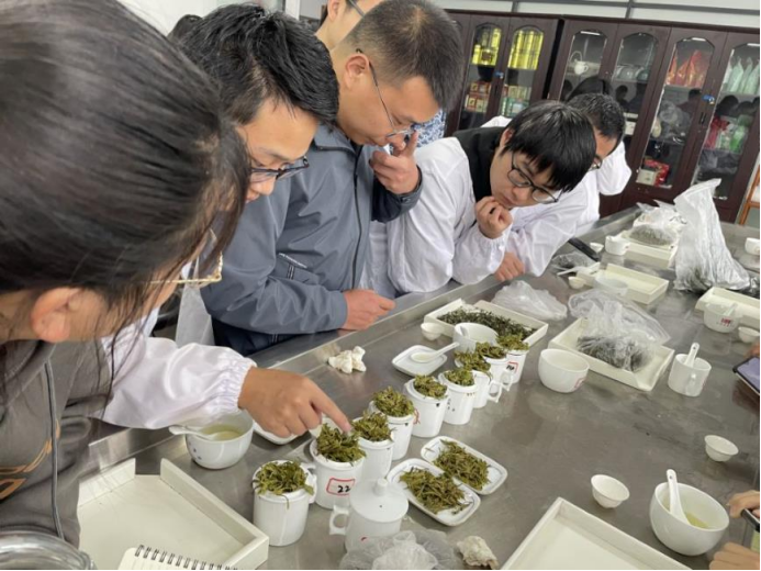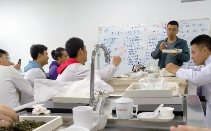 在手工制茶与审评环节,同学们在老师的带领下,开展了手工制茶训练,并各自对所制茶叶进行利茶叶感官审评。使同学们在提高制茶技能的同时,通过对茶叶外形、汤色、香气、滋味和叶底进行综合评价,找到自己所制茶叶的优缺点,为后期专业课程学习打下基础。