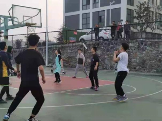 四点左右,参赛的老师和同学们早早的来到篮球场进行热身准备。随着口哨的吹响比赛正式开始,员工队迅速进入比赛状态,快速奔跑,精准中投,良好组织,比分超出教工队10多分。教工队迅速调整战术,靠着出色的配合,积极的跑位将比分慢慢缩小。上半场比分为40:30,员工队领先10分。下半场,老师们的状态越来越好,稳扎稳打,精妙配合,将比分反超,员工迅速调整自己的状态,接连命中中远距离投篮,近距离的上篮,将比赛推入白热化的阶段。双方队伍你来我往,互不示弱,十分激烈,最后以76比76平结束了这场的精彩篮球赛。