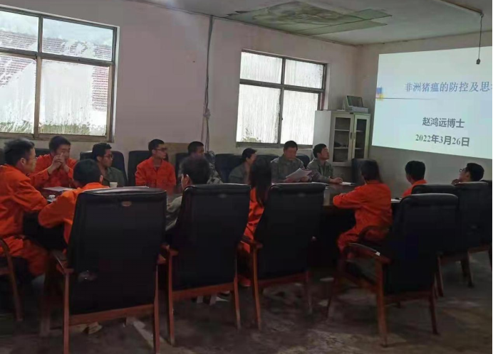 2022年3月23-27日,公司教师赵鸿远博士应邀赴汉滨区陕西阳晨牧业股份有限公司种猪场对非洲猪瘟防控工作进行现场技术指导。赵博士对该猪场人员隔离、车辆洗消烘、物资消毒、生猪销售等生物安全管理体系的关键环节一一进行了现场调研,并同阳晨集团生产技术总监、猪场场长等领导进行了讨论,发现在某些生物安全管理关键环节的措施上仍然存在一定的防疫漏洞,将会给非洲猪瘟的防控带来了较大的隐患风险。