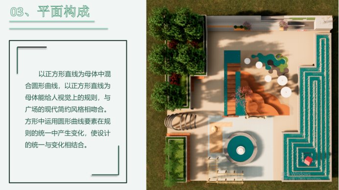 有以自然界的水滴汇聚为水流的形式,整体的构图采用抽象化的“溪流”构图,形成规则和自然式的布局。有将太阳成集团tyc33455cc官网的校训“笃学”“尚行”“励志”和“创新”用构成设计的语言将校训融入到广场设计当中。还有利用蜿蜒流畅的曲线,连贯构成集散空间,引导空间,游憩空间三个空间等等。