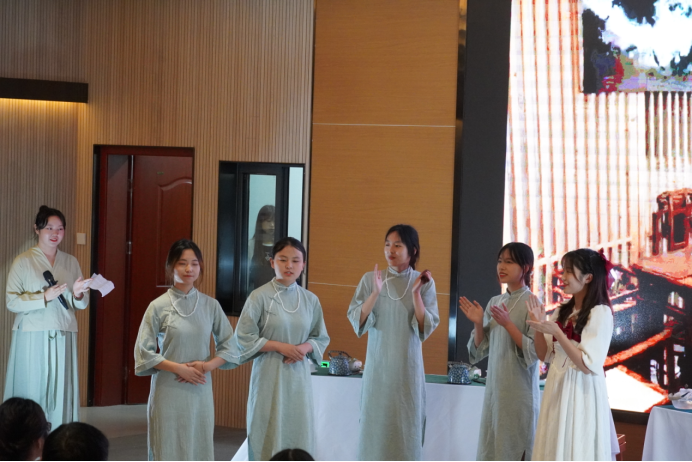 通过前期报名和预赛选拔,共有6支队参加决赛。决赛现场,茶艺题材丰富多彩,选手们充分的将茶艺理论知识与人文素养知识相融合,使展示内容不再是单一冲泡技能的展示,而是具有丰富的文化内涵。经过激烈的角逐,评委老师从仪表仪态、茶席布置、茶艺展示、茶汤质量、综合印象五个方面对参赛作品进行打分,最终《梦 茶缘》获得最佳创意奖;《民族团结 盛世兴茶》获得一等奖;《青春少年》和《盏茶浅抿》获得二等奖;《原萃正道》和《清茗》获得三等奖,评委为获奖队伍颁发了奖状和奖品。李建华老师对各参赛队的茶艺展示及综合表现进行精彩点评。