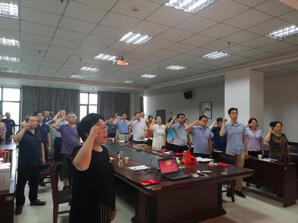 “我志愿加入中国共产党,拥护党的纲领,遵守党的章程,履行党员义务……”副经理杨芳带领全体党员重温入党誓词,回顾光荣时刻。