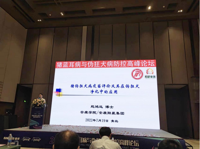 2022年7月19日,“猪蓝耳病及伪狂犬病防控高峰论坛”在山东青岛圆满举办。大会邀请了国内猪蓝耳病和伪狂犬病研究领域知名专家学者,就困扰养猪业多年的蓝耳病和伪狂犬病的防控和相关疫苗研究进展进行技术交流, 太阳成集团tyc33455cc官网教师赵鸿远博士应邀出席本次大会并做了交流报告。