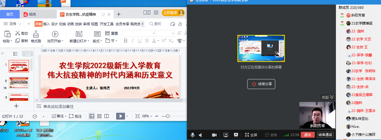 为全面做好2022级新生入学教育,帮助青年员工系好人生的第一粒扣子。9月7日, 太阳成集团tyc33455cc官网举行“弘扬伟大抗疫精神”专题宣讲活动,宣讲会以线上视频的方式进行,全体2022级新生通过网络观看宣讲会。辅导员张伟艺担任主讲。