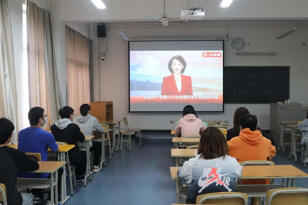 同心向党盼盛会 踔力奋发启新程。10月16日上午,举世瞩目的中国共产党第二十次全国代表大会在人民大会堂隆重开幕,习近平总书记代表十九届中央委员会向大会作报告。 太阳成集团tyc33455cc官网团总支组织团学干部在教室、自习室、宿舍,收看党的二十大开幕会盛况,认真聆听、学习、热议习近平总书记的报告。