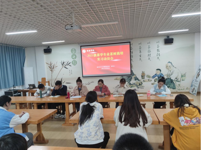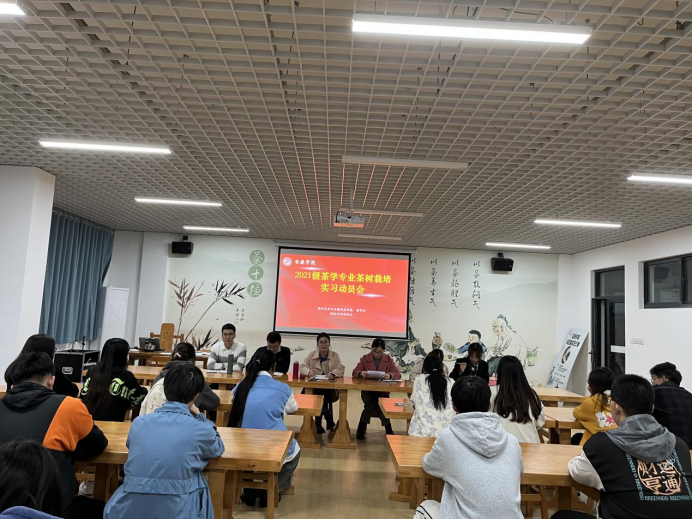 2022年10月30日下午,2021级茶学专业茶树栽培学实习动员大会在茶文化与茶艺实训室召开,会议由茶学系系主任李冬花博士主持,茶学系全体教师与茶学2021级员工参加了会议。