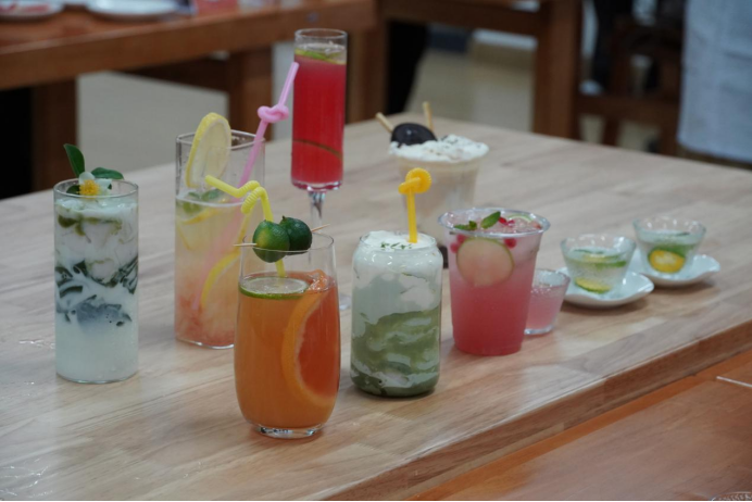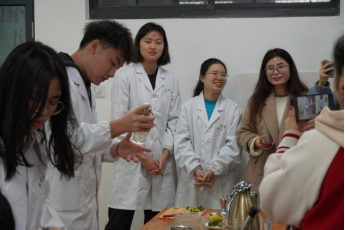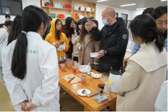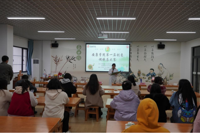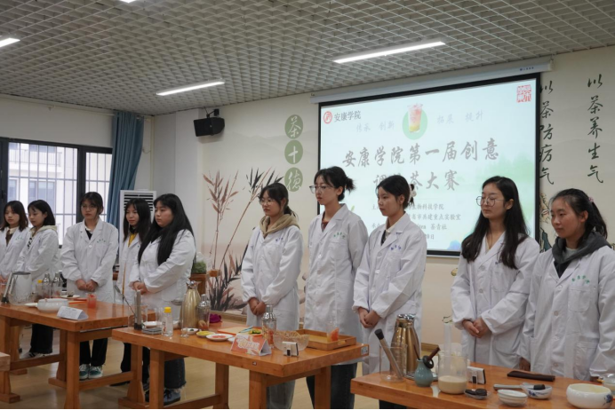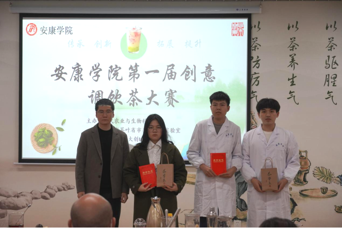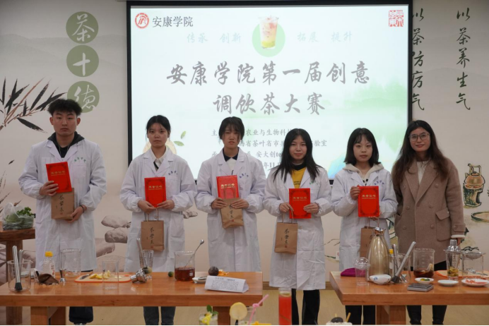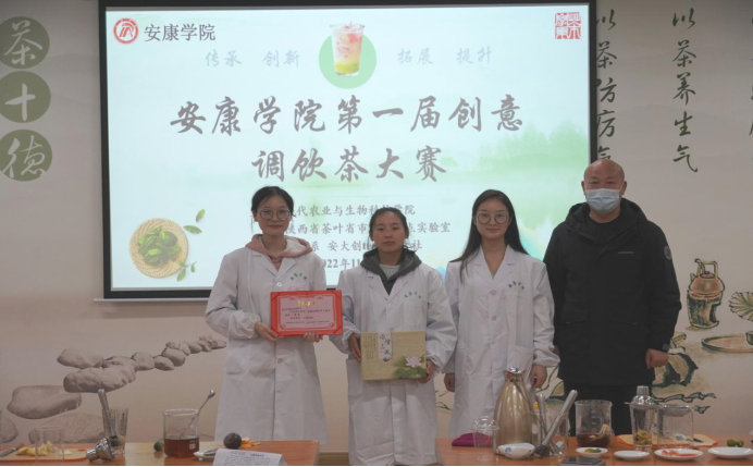 2022年11月20日上午,太阳成集团tyc33455cc官网第一届创意调饮茶大赛暨《茶产品开发》课程展示活动于产教融合大楼茶艺实验室举行。参加本次比赛的评委主要有公司党总支书记孙保本、茶学系主任李冬花、陕西省茶叶省市共建重点实验室办公室主任齐玉岗及茶学专业教师程晓梅、常娜、袁月和吴冲。