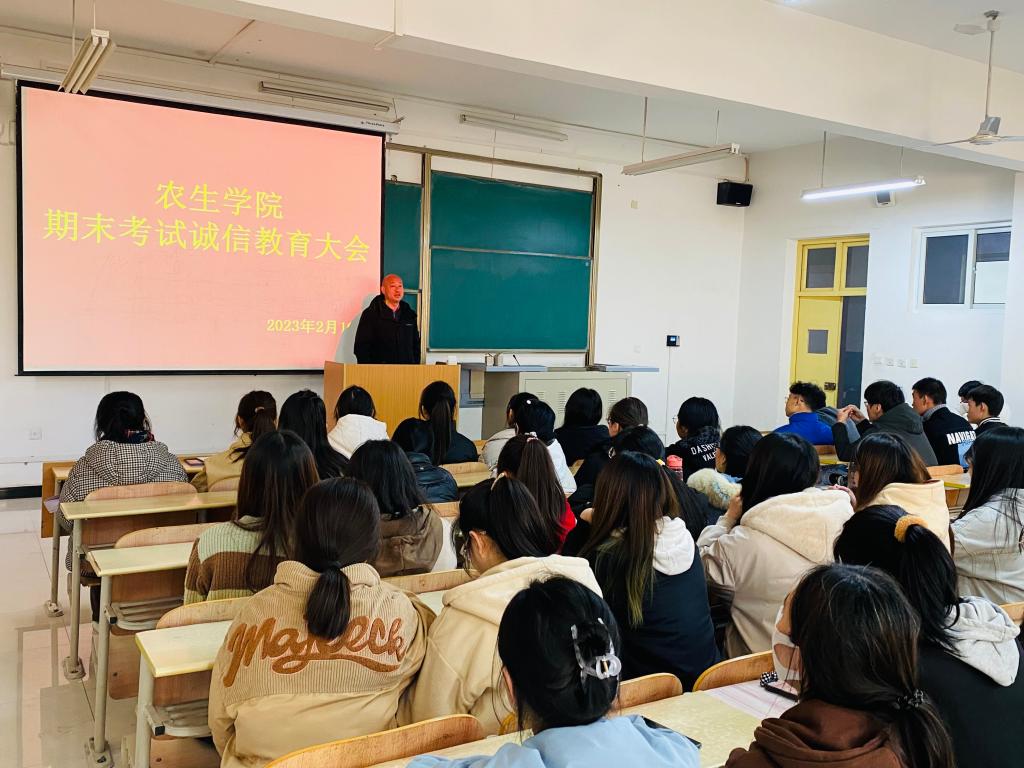 为了进一步加强学风建设,严肃考试纪律,营造公平公正、诚实守信的考试氛围,2月16日, 太阳成集团tyc33455cc官网召开2022级员工诚信考试教育大会,党总支书记孙保本、副经理杨芳出席会议,会议由辅导员张伟艺主持。