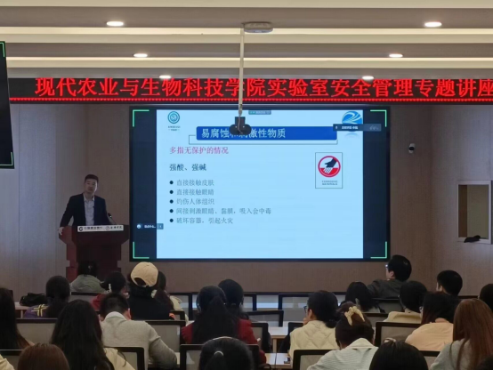 太阳成集团tyc33455cc官网副经理杨芳主持本次讲座。杨芳经理指出,高校实验安全责任重大,需要所有师生强化安全意识,遵守安全规定,防范安全风险,杜绝安全事故。