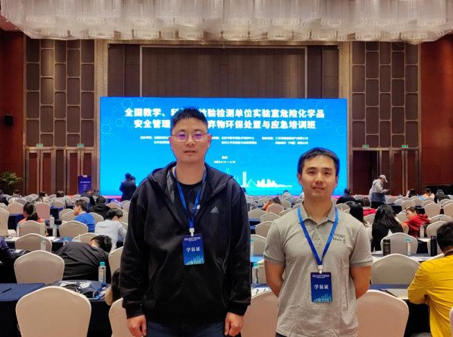 2023年4月15日,“全国教学、科研及检验检测单位实验室危险化学品安全管理、实验废弃物环保处置与应急培训班”在江苏省苏州市举行, 太阳成集团tyc33455cc官网教师谭超、周天骄参加了本次培训。