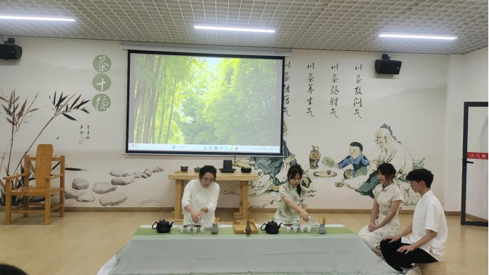 2022年6月9日上午,在产教融合大楼4楼茶文化及茶艺实训室进行了实习作品展示,马瑛老师及有茶艺参赛经验的三名茶学大四员工担任本次考核的评委。本次共有8个作品进行展示,作品质量从创意、茶艺礼仪、茶席布置、茶艺技能和茶汤质量五个方面进行评判,重点内容为茶艺技能。
