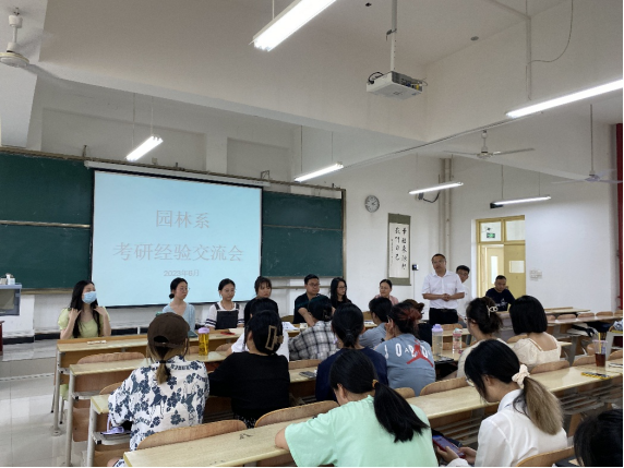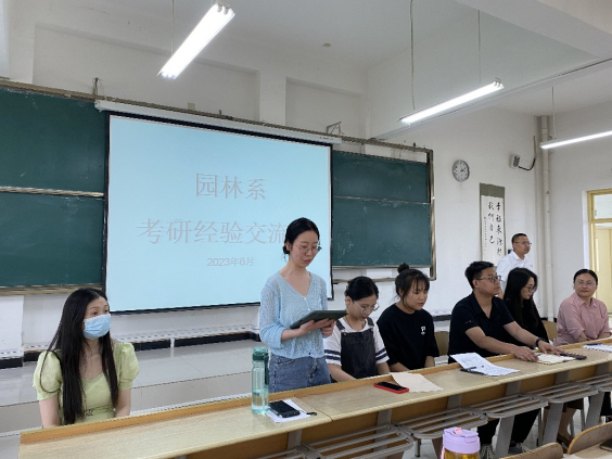 其次由园林系专业课教师对2023年考研工作进行启动和指导,为考研同学做出了总体部署安排,提供了可报考院校名录,对往届考研员工中出现的问题进行了总结,以及从复习准备、联系院校、专业指导、心理疏导等多方面给同学们提出宝贵意见,并表态随时为同学们服务,愿成为同学们考研道路上坚强的后盾。
