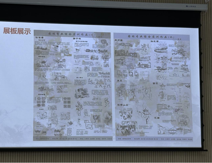 本次综合实训课程共分为22个小组。同学们以园林规划设计理论为基础,针对苏州及安康各类城市绿地实践项目,围绕景观空间设计理念、景观空间布局、叠山理水、植物配置等内容进行实地调研和项目分析。各小组通过对外业实习内容的梳理与整合制作出实习展板,并进行实习成果汇报。