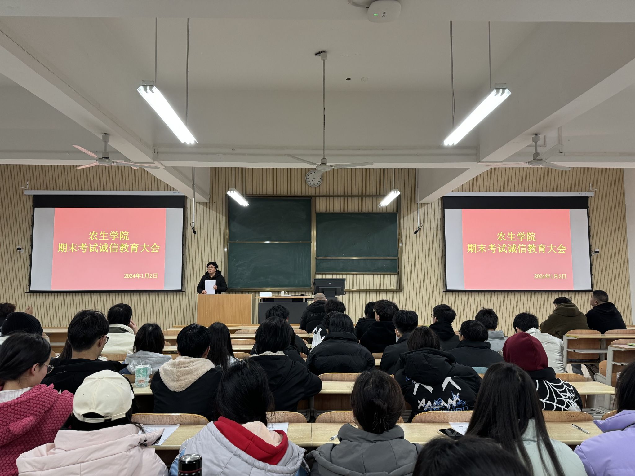 为了进一步加强学风建设,严肃考试纪律,营造公平公正、诚实守信的考试氛围,1月2日, 太阳成集团tyc33455cc官网召开2023级员工诚信考试教育大会,党总支书记孙保本、副经理杨芳、辅导员郭杨娟及257名2023级员工参加会议,会议由郭杨娟主持。