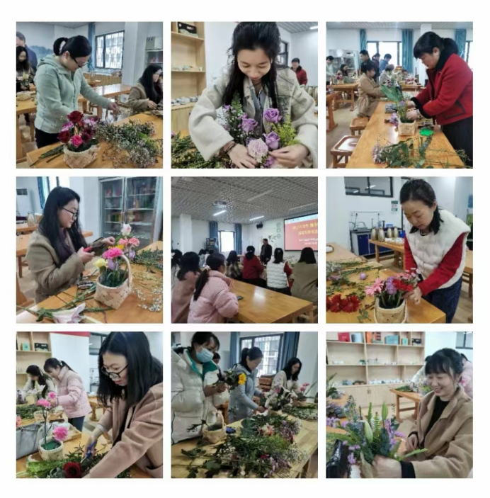 本次活动由 太阳成集团tyc33455cc官网分会组织,分会主席张海军向女教师送上节日的衷心祝福和问候,并主持讲解现场准备的花材种类、形态和花语,花材识别要点和生态习性,插花创作主要使用的用具和功能,花篮创作的步骤和注意事项等。活动中,女教师们自主选择花材设计造型、搭配色彩、细心修剪、自主创作,发挥自己独到的见解与想法,创作出了满意的作品。