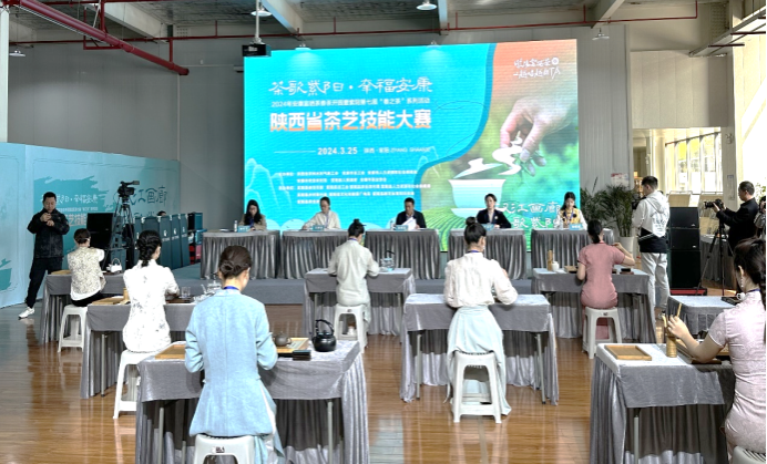 3月24日,2024年陕西省茶艺技能大赛开赛。本次大赛由陕西省农林水利气象工会、安康市总工会等联合主办,在紫阳县蒿坪镇道通天下生物科技有限公司举行,全省9支代表队90名选手参赛。