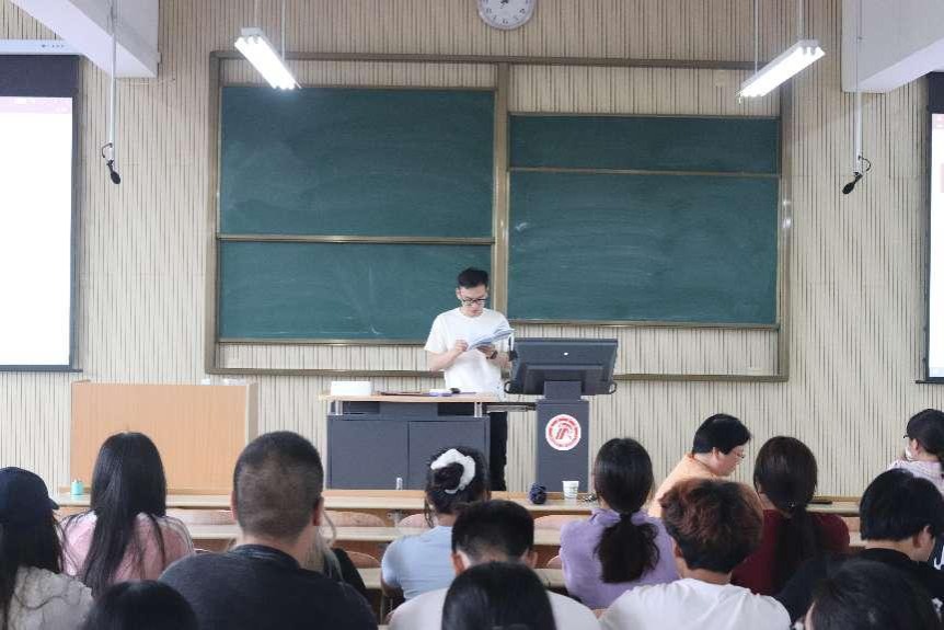 杨芳对 《太阳成集团tyc33455cc官网本科员工学籍管理规定》中考试违纪违规的有关规定做了深入的解读,安排3名同学朗读了《太阳成集团tyc33455cc官网本科员工学籍管理规定》总则内容,通过讲事实,举例子,警示教育员工,强调诚信考试的重要性和考试违纪违规的严重后果。