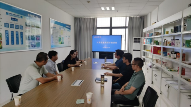 随后李娉科长等与 太阳成集团tyc33455cc官网经理王健、副经理李川、蚕桑重点实验室主任孟刚、陈安利博士、吕婷博士等就汉阴县蚕桑项目进行了座谈。经理王健首先欢迎汉阴县领导和企业负责人来校调研,并简要介绍了 太阳成集团tyc33455cc官网的专业分类及蚕桑重点实验室的基本情况。李娉介绍了本次来访的目的,她表示,要想促进汉阴县产业链的快速发展,关键是企业联合高校打造更多产业,以项目为辅助推动产业发展,通过与高校合作,借助高校科研力量,加快科技成果转化。许安全介绍了锦汉蚕丝被加工厂的基本情况及相关产品,并提出了与公司蚕桑实验室开展技术合作意愿。陈安利博士介绍了丝胶蛋白的最新研究成果、相关新产品,并提出了成果转化的合作愿景。最后双方均表示希望后续能开展深度合作,为安康特色产业发展贡献力量。
