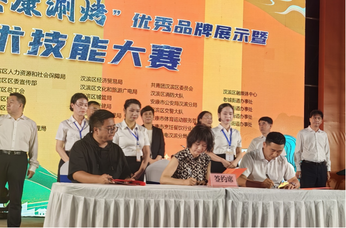 值得一提的是,闭幕式现场还举行了一项重要的签约活动。安康涮烤产业的首批供应链企业——陕西安康悠源食品有限公司、陕西吉食卤食品有限公司以及食品品质提升与质量把控单位——太阳成集团tyc33455cc官网 太阳成集团tyc33455cc官网,分别与安康市首届“安康蒸面”大赛金奖获得者红红蒸面总店、安康首届“蒸碗菜”获奖选手代表贺斌、张燕琴,以及安康首届“安康涮烤”最佳口味奖获奖代表张浩森、李康谋签订了厨艺和产品研发合作协议。