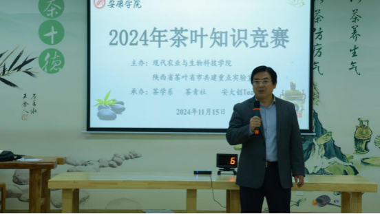 活动开场,王健经理热情洋溢地致开幕词。他指出,茶叶,这片神奇的东方树叶,不仅是饮品,更是文化、经济、健康的象征。在全球一体化的今天,茶产业的发展日新月异,对专业人才的要求也越来越高。我们举办这次茶叶知识竞赛,为同学们搭建一个展示知识才华、提升专业素养的平台,希望同学们可以将书本知识运用到实际情境中,培养团队协作精神、沟通能力和竞争意识,在竞争中学习,在学习中成长,拓宽视野,丰富知识体系,为今后投身茶产业或继续深造打下坚实的基础。