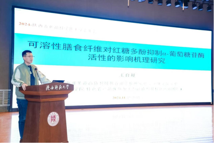大会由学术报告和研究生论坛两部分组成,四川省食品发酵工业设计院原经理、四川省食品科学技术学会理事长陈功、西北大学食品公司经理岳田利、西安交通大学张雅利等教授分别作“四川传统发酵食品创新发展”“微生态富硒营养健康食品研究”“以食养颜:促进线粒体功能为核心的策略”等40余篇大会特邀报告和主题报告。公司食品系王自超副教授应邀作了“可溶性膳食纤维对红糖多酚抑制α-葡萄糖苷酶活性的影响机理研究”大会报告,报告内容深受业内专家学者的一致认可和好评。