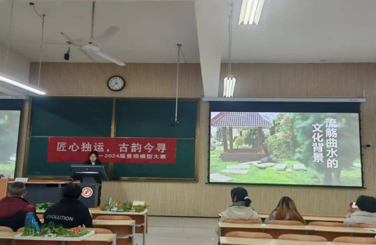 12月27日晚上19:00,由园林系主办的第三届“匠心独运,古韵今寻”景观模型大赛决赛在1203教室隆重开幕。参加本次大赛的领导老师有公司党总支书记孙保本、王楠老师、韩露露老师、张心愿老师、张铭珺老师、沈古理老师、祝志一老师。本次大赛旨在激发同学们的创新思维,培养同学们的动手能力,并加深对园林景观设计的理解与认识。