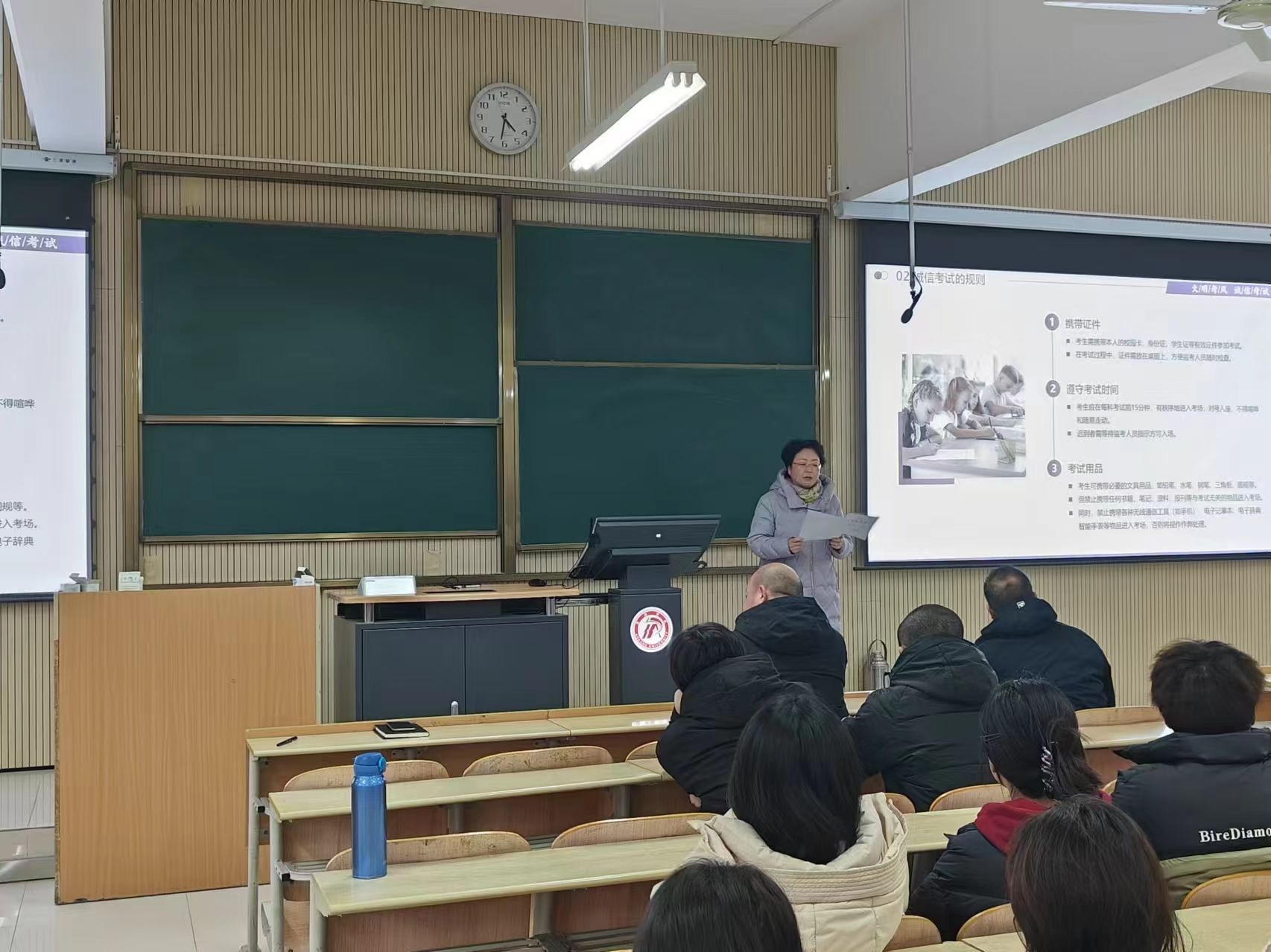 杨芳对《太阳成集团tyc33455cc官网学士学位授予条例》《太阳成集团tyc33455cc官网本科员工学籍管理规定》中考试违纪违规有关规定做了深入的解读,通过讲事实,举例子,以往届员工作弊的实例,警示教育员工,强调诚信考试的重要性和考试违纪违规的严重后果。