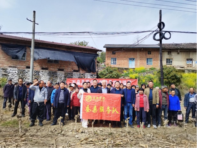 在明星村果桑园,孟刚等为果桑业主培训示范了果桑栽培管理和菌核病防控技术,发放了桑园管理肥料、防治药品和培训资料。在军民村,彭云武等讲授了蚕前消毒、大蚕饲养等技术要点,指导农户做好春季养蚕前的消毒、防病防害准备工作,为农户发放了蚕室消毒物资。