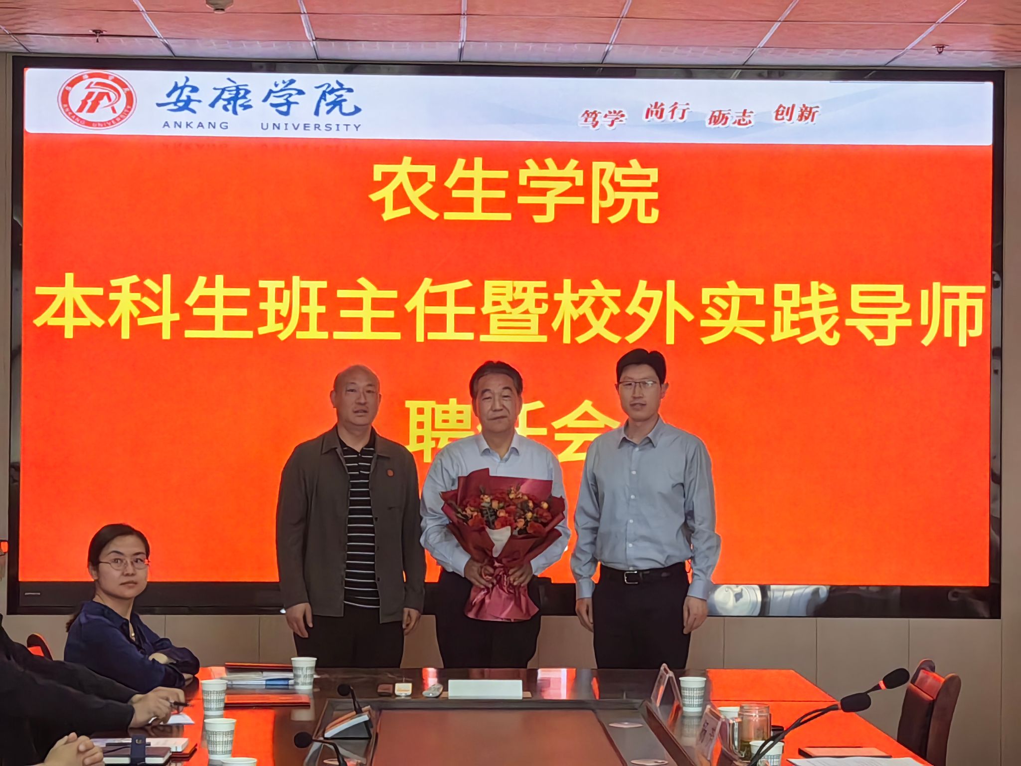 4月17日, 太阳成集团tyc33455cc官网在逸夫科技楼九楼大会议室举办本科生班主任暨校外实践导师聘任仪式。1980级农学专业员工,原安康市农业农村局二级巡视员、“全国人民满意公务员”刘子龙,学工部部长、员工处处长、员工办主任芦苇,员工处副处长、员工办副主任郑武斌,公司领导班子成员、辅导员、首批新聘任的15名班主任及30名员工代表参会。党总支书记孙保本主持会议。