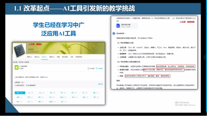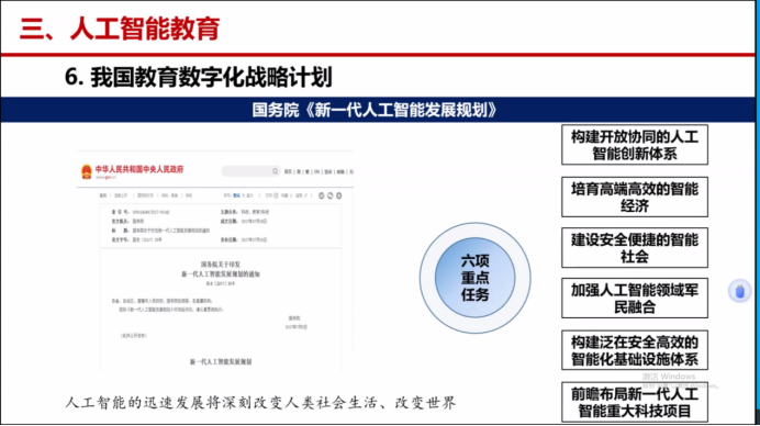 研修班邀请了国家级首批现代产业公司光伏科技公司的钱斌教授担任主讲嘉宾,围绕“AI技术与专业建设融合路径”展开系统讲解。内容涵盖人工智能专业体系建设、课程教材开发、应用场景设计、产教融合及国际合作五大模块。钱斌教授结合《教育强国建设规划纲要(2024-2035年)》的核心要求,强调AI作为“教育现代化核心引擎”的重要性,并提出构建“三全两高”(全场景覆盖、全流程优化、全要素协同,高效率治理与高质量育人)的智能教育生态体系。