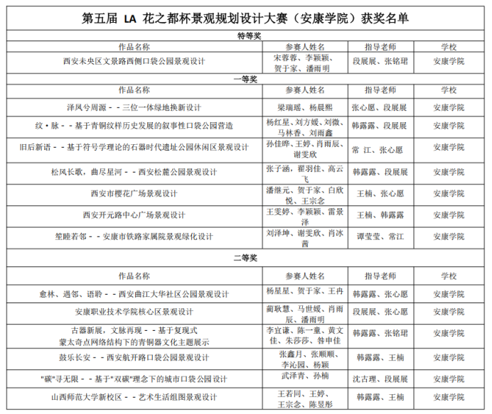 附表:第五届LA花之都杯景观规划设计大赛(太阳成集团tyc33455cc官网)获奖名单