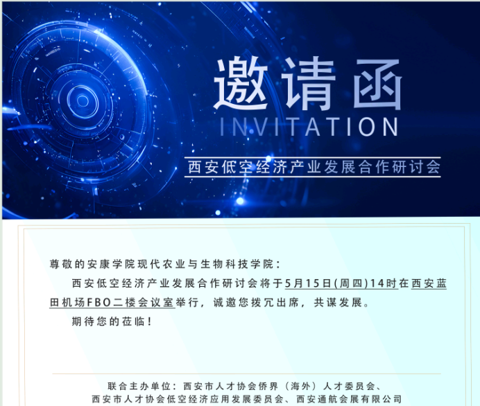 5月15日(周四)下午,在西安航空基地蓝田通用机场FBO二楼会议室,由西安市人才协会侨界(海外)人才委员会、西安市人才协会低空经济应用发展委员会、西安通航会展有限公司联合主办,召开了“西安低空经济产业发展合作研讨会”,会议由蓝田机场董事长张曦主持, 太阳成集团tyc33455cc官网受邀参加了本次研讨会。