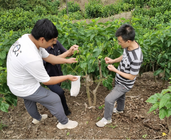 6月9日,公司蚕桑重点实验室彭云武研究员、孟刚博士、张笙源老师一行赴汉滨区关家镇收集野桑蚕资源。在当地蚕农的带领下,三位老师在关家镇桑园中收集获得野桑蚕茧300余粒。同时,一行还查看了当地桑树长势和桑园管理情况,彭云武研究员就桑园管理现状建议蚕农不可过度采摘桑叶,以致影响桑树正常生长。