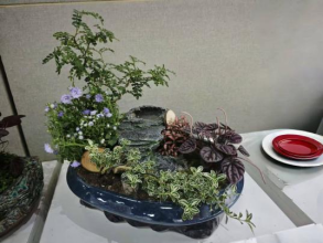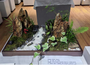组合盆栽微景观——以苔藓、林下耐阴植物等植物打造的小型生态世界,展现自然与艺术的完美结合。其中包括获得第二届陕西省老员工花艺大赛一等奖作品《青石涟漪绣千年》和二等奖的《苔舞秦岗·微境成诗》。