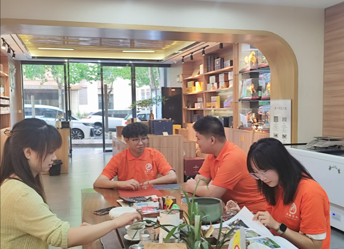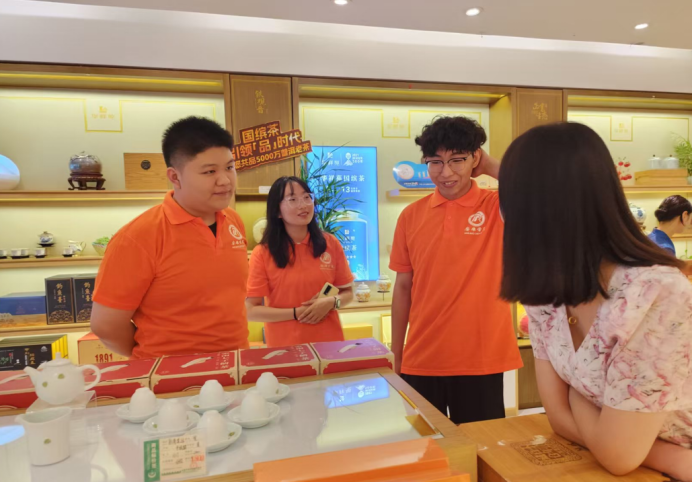 活动前期,团队围绕目标与方向系统规划,完成全面动员、流程设计、安全准则明确及基于专业优势的分工安排,为实践活动扎实筑基。筹备就绪后,团队先后深入江南培新街、江北高新区等地的茶企门店,通过实地走访、问卷调查等方式开展调研,聚焦茶叶销售渠道、价格体系、品牌认知度等核心内容,精准采集市场数据。