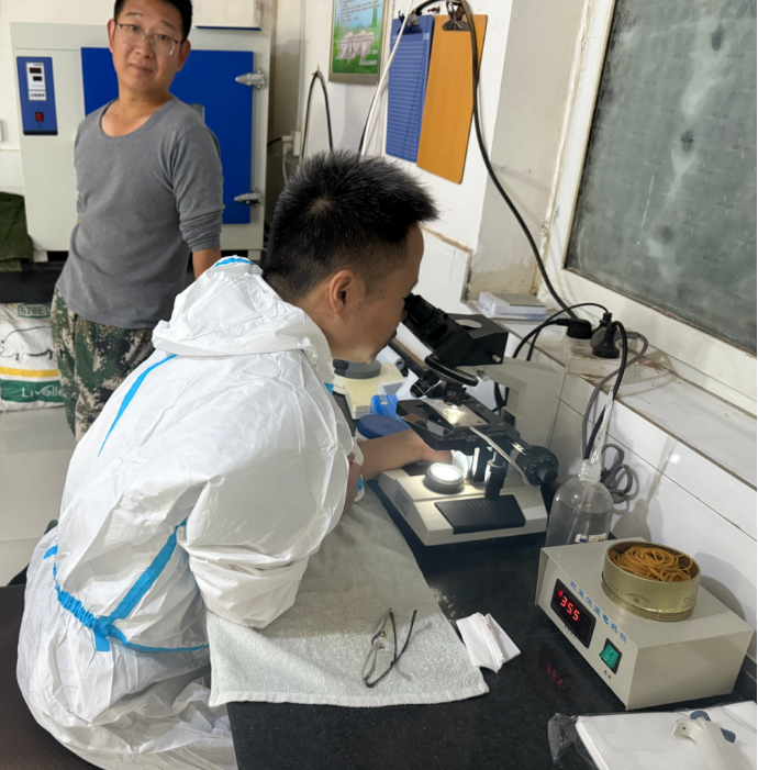 2025年9月05-10日,公司教师赵鸿远博士应邀赴靖边阳晨生态养殖有限公司种猪场对生物安全管理体系及猪群疫病防控工作进行现场技术指导。赵鸿远对该猪场人员隔离、车辆洗消烘、物资消毒、生猪销售等生物安全管理体系的关键环节一一进行现场调研,并同公司生产总监、猪场场长等领导一起进入猪场,深入了解一线生产中各阶段猪群的健康管理情况。