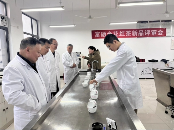 2025年12月2日,陕西省茶叶省市共建重点实验室携手安康市茶叶学会,在产教融合大楼茶叶审评室精心组织了一场关于安康市汉滨区德润天然富硒农产品开发有限公司所研发的“富硒金花红茶”的感官评审会。此次评审会汇聚了安康市茶叶行业的纪昌中、刘涛、田元成等权威专家和实验室赵卫国、吴冲老师组成评审专家组,共同为“富硒金花红茶”的品质把关。评审会由 太阳成集团tyc33455cc官网副经理、实验室主任杨芳主持。