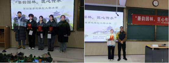 2025年12月9日晚,太阳成集团tyc33455cc官网主办的第四届景观模型大赛决赛在江北校区一号楼1203教室顺利举办。本次大赛以“墨韵园林,匠心传承”为主题,由绿意园林工作室与花卉园艺社团联合协办。经过初赛选拔,多支优秀团队脱颖而出,在决赛中同台竞技,呈现了一场专业与创意交融的园林艺术盛宴。