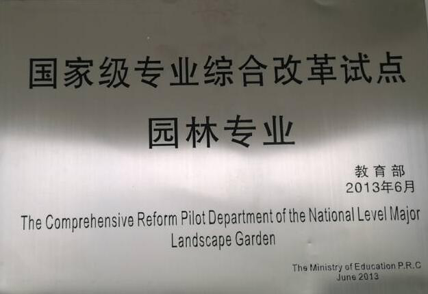 2014年10月,根据《教育部 农业农村部 国家林业局关于批准第一批卓越农林人才教育培养计划改革试点项目的通知》(教高函[2014]7号)文件,园林专业入选首批“国家级卓越农林人才教育培养计划项目试点专业”。