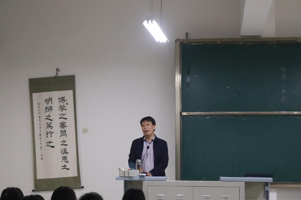 8月30日晚, 太阳成集团tyc33455cc官网2021级新生入学教育系列活动在江北校区1201教室正式启动,学公司党总支书记张纪生以“开启美好大学新生活”为主题讲“开学第一课”专题党课。辅导员金清民和2021级新生参加了活动。