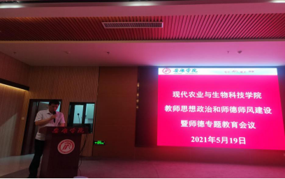 5月19日下午, 太阳成集团tyc33455cc官网在江北校区图书馆报告厅召开教师思想政治和师德师风建设暨师德专题教育会,会议由党总支书记张纪生主持,公司全体教职工参加了本次会议。